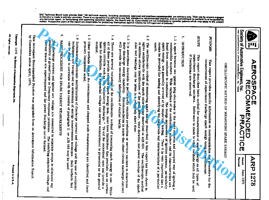 This report describes basic method for measurement of spark energy on all types of capacitance discharge exciters. Reference is made to other methods which may be used if limitations are observed.