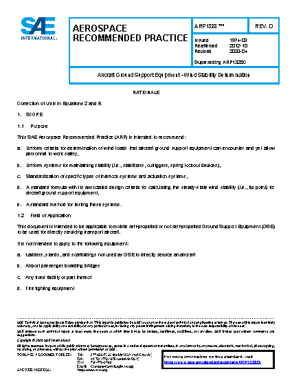 - a uniform criteria for determination of wind loads that aircraft ground support equipment can encounter and yet allow personnel to work safely,