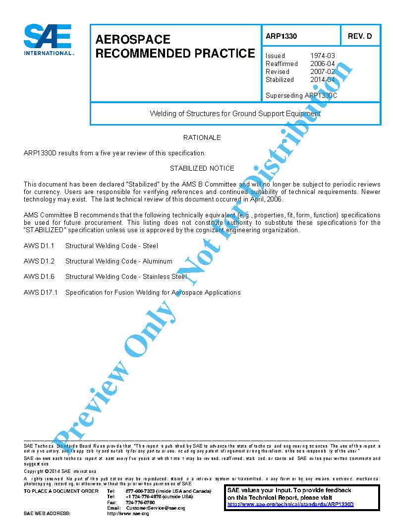 Welding of Structures for Ground Support Equipment (Stabilized: Apr 2014)