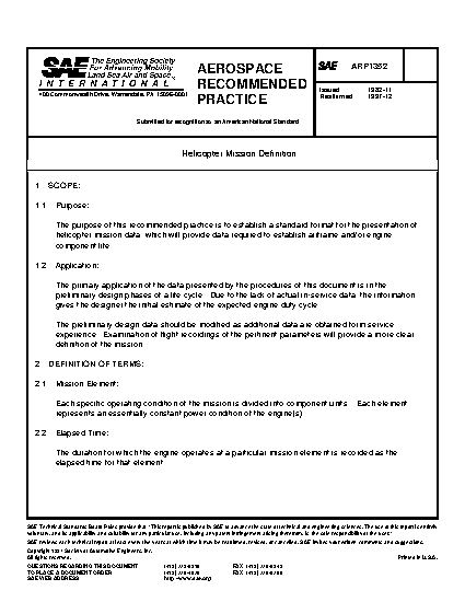 The purpose of this recommended practice is to establish a standard format for the presentation of helicopter mission data, which will provide data required to establish airframe and/or engine component life.