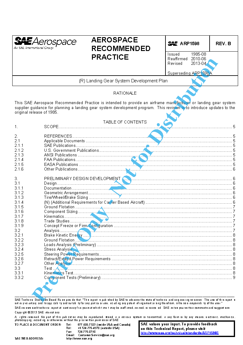 This SAE Aerospace Recommended Practice (ARP) is intended to document the process of landing gear system development. This document includes landing gear system development plans for commercial, military, fixed wing and rotary wing air vehicles.