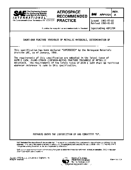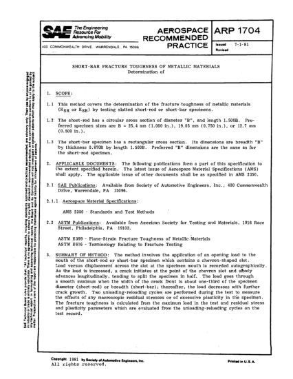 SHORT-BAR FRACTURE TOUGHNESS OF METALLIC MATERIALS Determination of