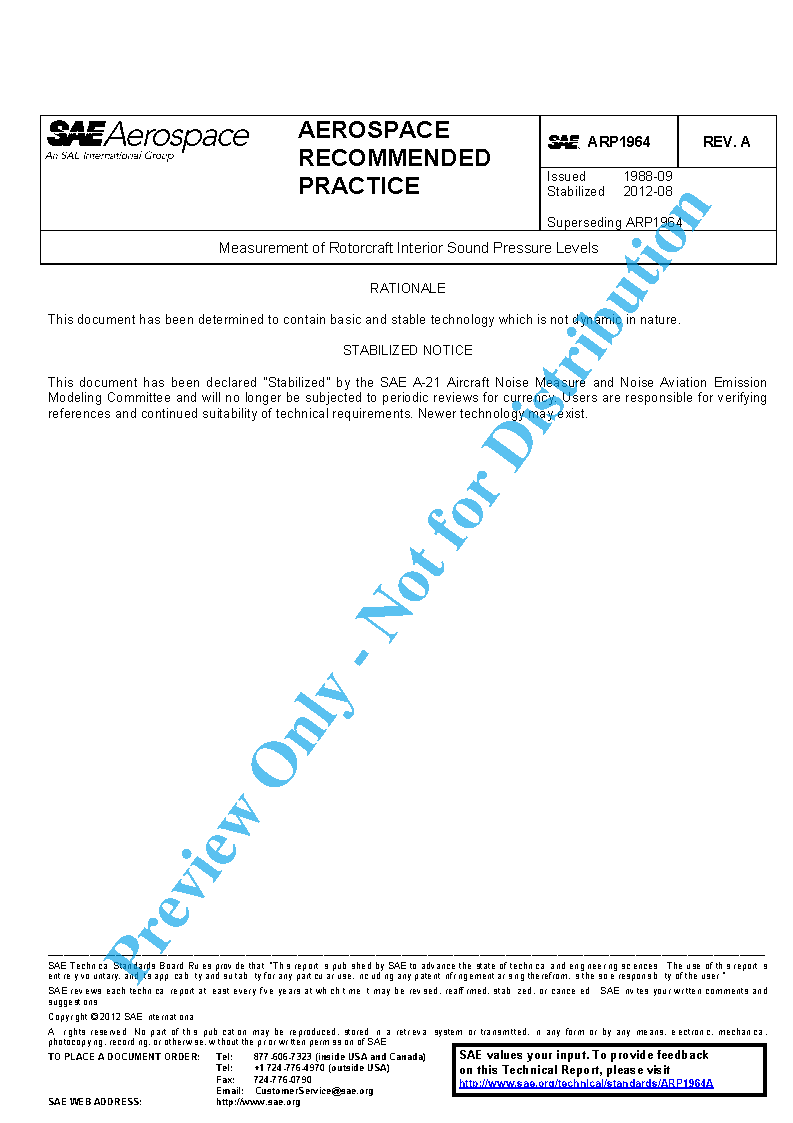 Measurement of Rotorcraft Interior Sound Pressure Levels (Stabilized: Aug 2012)