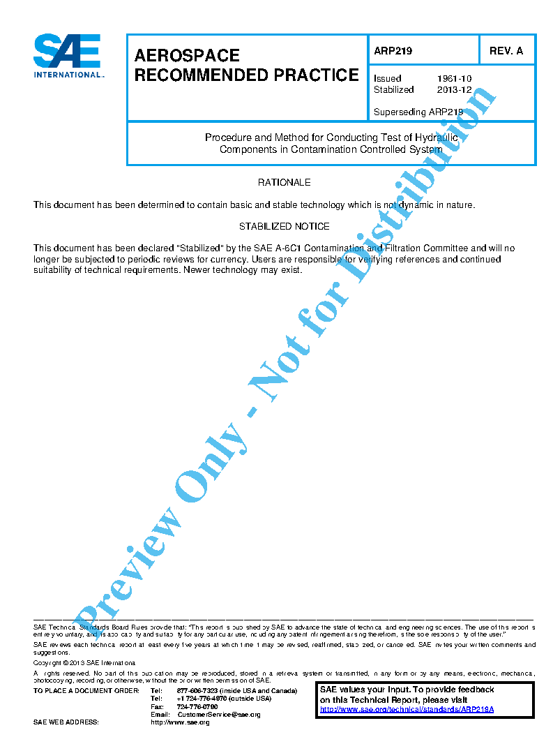 Procedure and Method for Conducting Test of Hydraulic Components in Contamination Controlled System (Stabilized: Dec 2013)