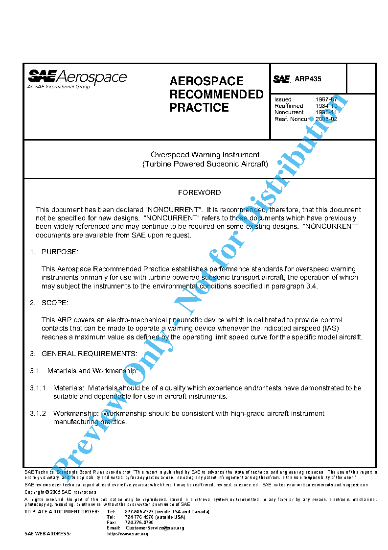 This ARP covers an electro-mechanical pneumatic device which is calibrated to provide control contacts that can be made to operate a warning device whenever the indicated airspeed (IAS) reaches a maximum value as defined by the operating limit speed curve for the specific model aircraft.