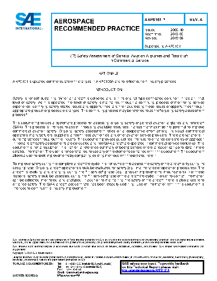 This document describes a process that may be used to perform the ongoing safety assessment for (1) GAR aircraft and components (hereafter, “aircraft”), and (2) commercial operators of GAR aircraft. The process described herein is intended to support an overall safety management program. It is associated with showing compliance with regulations and also establishing and meeting internal company safety standards. The process described herein identifies a systematic means, but not the only means, to assess continuing airworthiness.