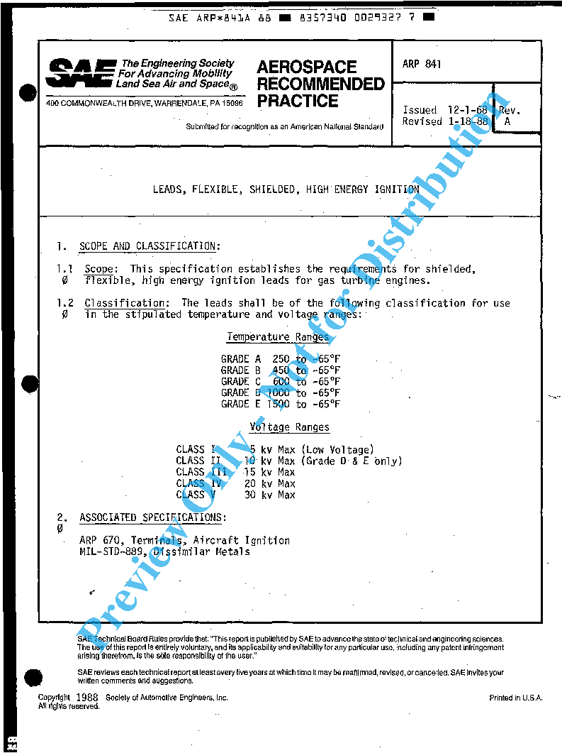 This specification establishes the requirements for shielded, flexible, high energy ignition leads for gas turbine engines.