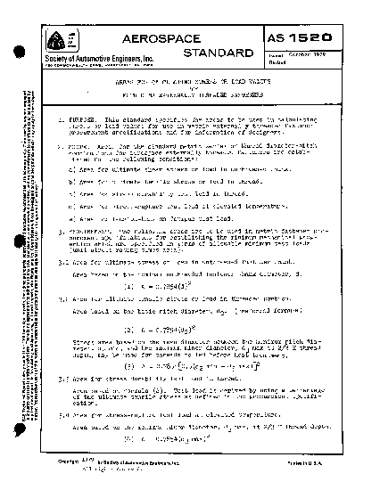 Areas for the standard metric series of thread diameter-pitch combinations for aerospace externally threaded fasteners are established for the following conditions: