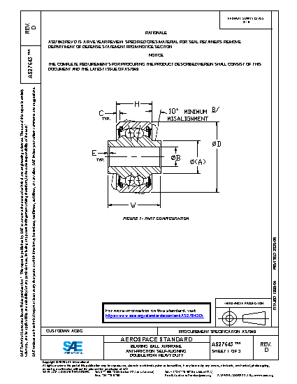 IN ORDER TO BRING THE AS27643 DOCUMENT UP TO DATE WITH ALL THE REFERENCE DOCUMENTS, REVISION WAS CREATED. THE CHANGES MADE WERE EDITORIAL AND TO MAKE THE FORMAT THE SAME AS SIMILAR DOCUMENTS WITHIN THE WORKING GROUP. A CODE “E” FOR USE OF ZINC-NICKEL PLATING WAS IMPLEMENTED. THE ADDITION OF SPECIFYING TYPE I FOR MIL-PRF-23827 GREASE AND THE ADDITION OF THE CADMIUM NOTE WAS ALSO ADDED. SEAL MATERIAL POLYTETRAFLUOROETHYLENE SHEET PER AMS3666 WAS REMOVED.