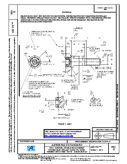REVISE THREAD SPECIFICATION TO AS8879. REVISE LIGHTENING HOLE CONFIGURATION (ADD SECTION VIEW) TO ALLOW OPTIONAL SHAPE AT BOTTOM OF HOLE, DELETE .015 MAX RADIUS AT BASE OF WRENCH PAD, UPDATE FPI REQUIREMENTS, ADD SURFACE FINISH REQUIREMENTS TO BOLT HEAD, ADD MIN. BEARING DIA, DELETE METRIC DIMENSIONS, UPDATE ANSI Y14.5-1973 TO ANSI Y14.5M- 1982, GENERAL EDITORIAL UPDATE, REFERENCES UDATED AND FIGURE 1 REDRAWN.