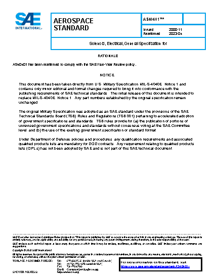 This specification covers the general requirements for electrical solenoids used to actuate various devices through the conversion of electrical signals into mechanical motion. These solenoids are of the axial stroke type and the rotary stroke type.