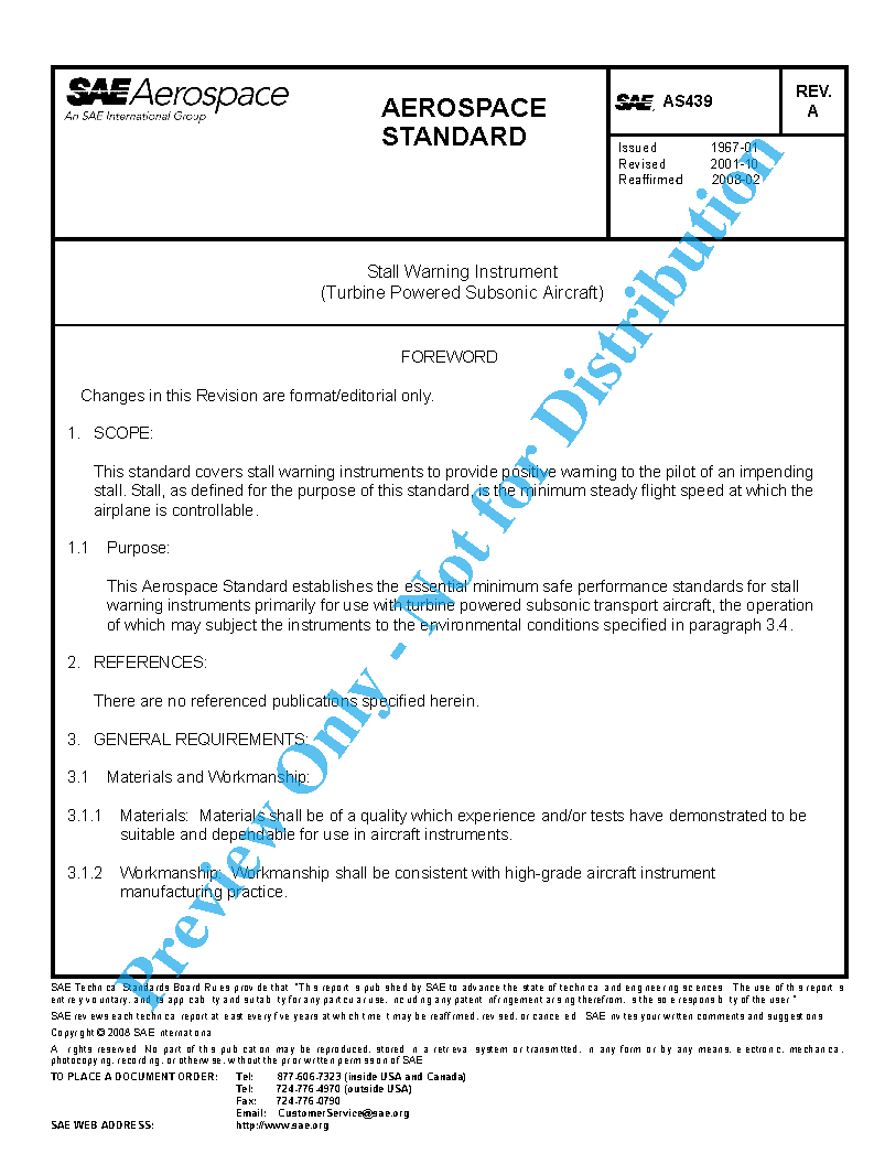 This standard covers stall warning instruments to provide positive warning to the pilot of an impending stall. Stall, as defined for the purpose of this standard, is the minimum steady flight speed at which the airplane is controllable.