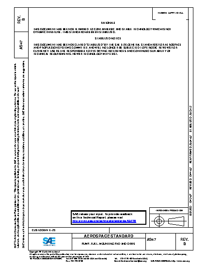 PUMP, FUEL, MOUNTING PAD AND DRIVE (Stabilized: Dec 2013)