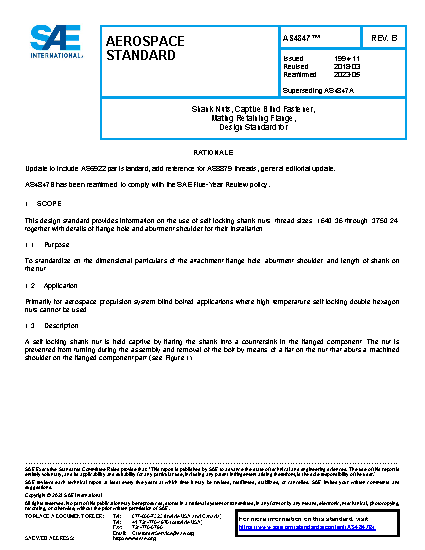 Shank Nuts, Captive Blind Fastener, Mating Retaining Flange, Design Standard For