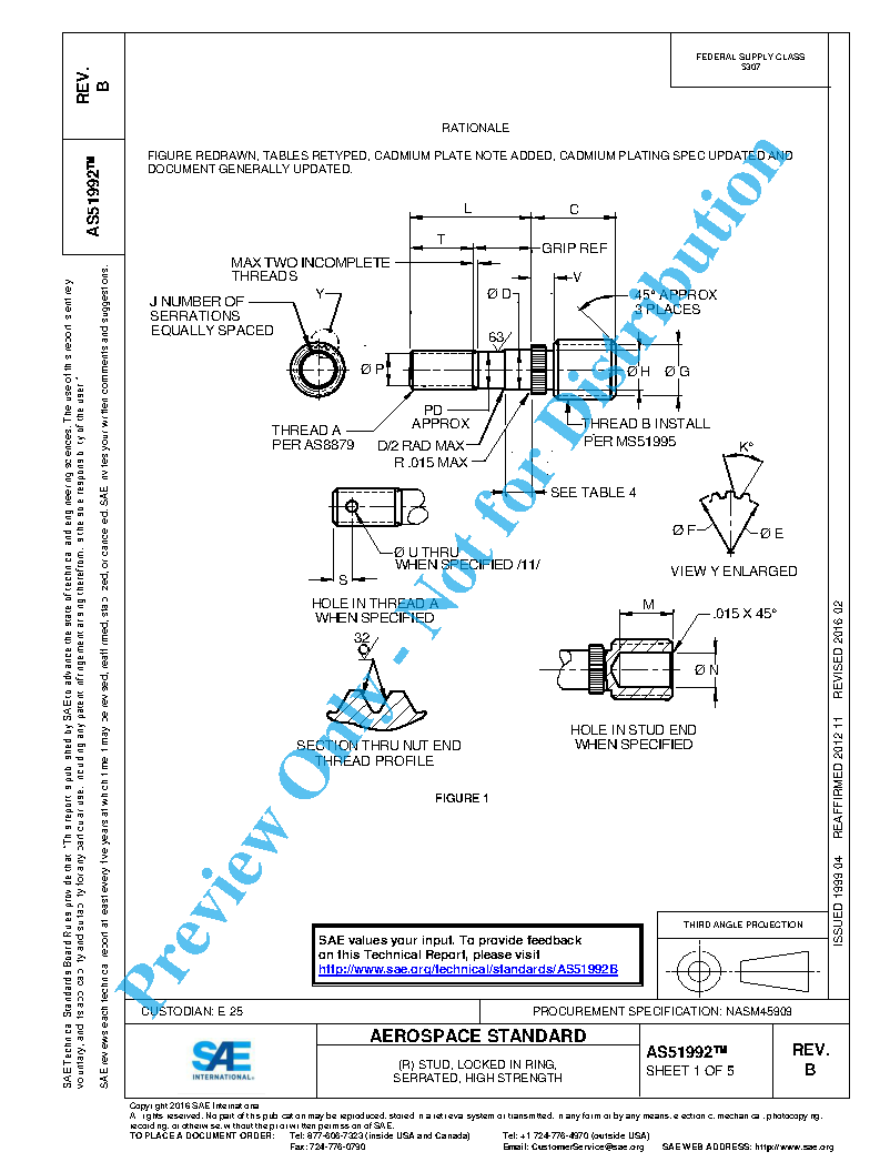 FIGURE REDRAWN, TABLES RETYPED, CADMIUM PLATE NOTE ADDED, CADMIUM PLATING SPEC UPDATED AND DOCUMENT GENERALLY UPDATED.
