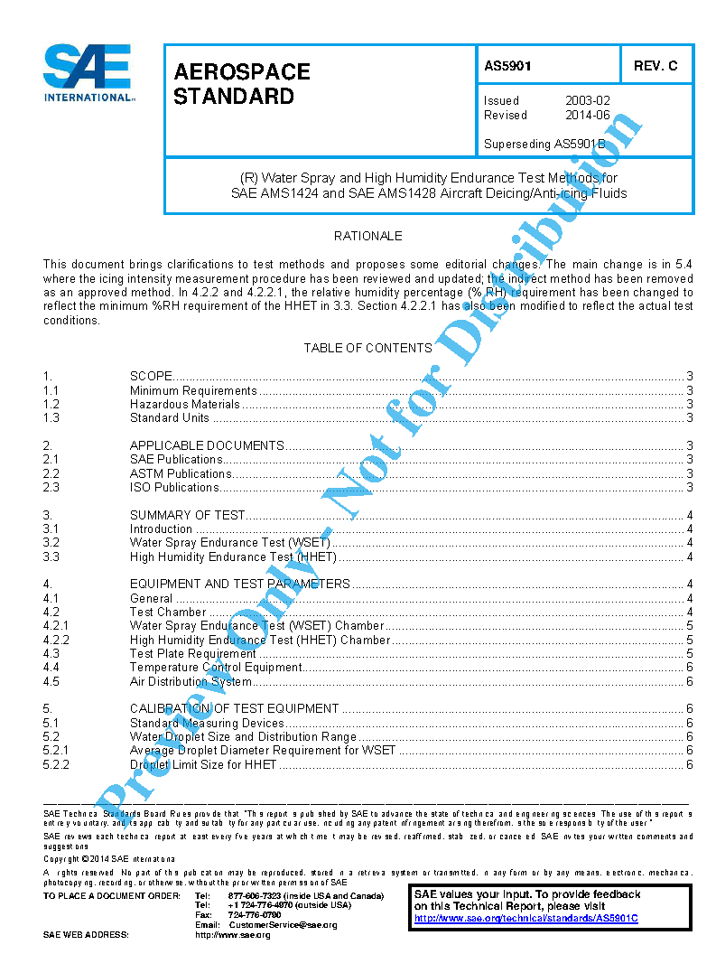 This document establishes the minimum requirements for an environmental test chamber, and test procedures to carry out anti-icing performance tests according to the current materials specification for aircraft deicing/anti-icing fluids. The primary purpose for such a test method is to determine the anti-icing endurance under controlled laboratory conditions of AMS1424 Type I and AMS1428 Type II, III, and IV fluids.