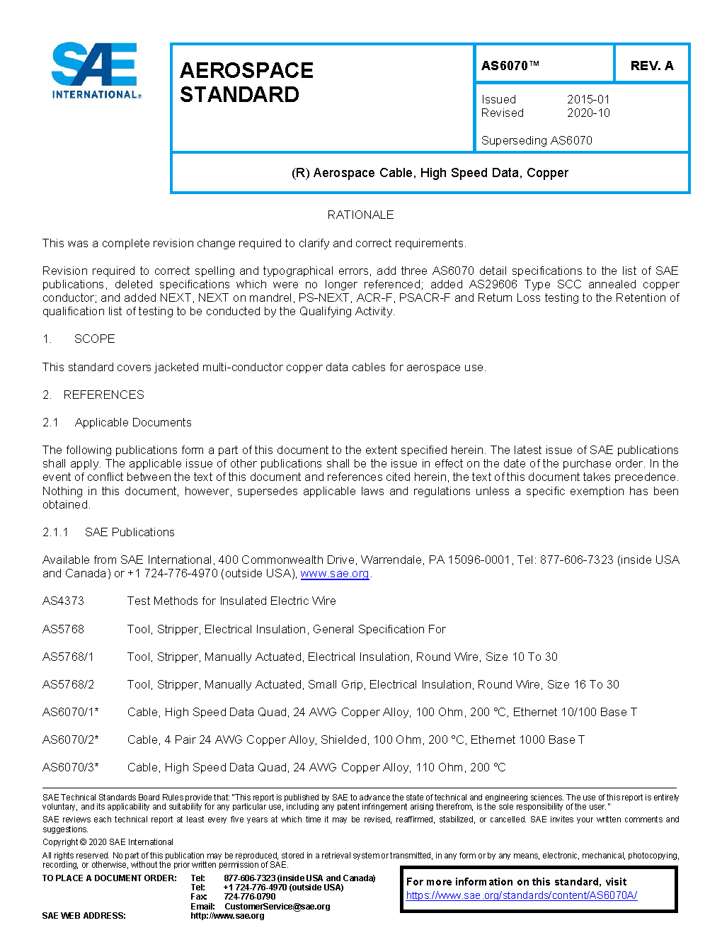 This standard covers jacketed multi-conductor copper data cables for aerospace usage.
