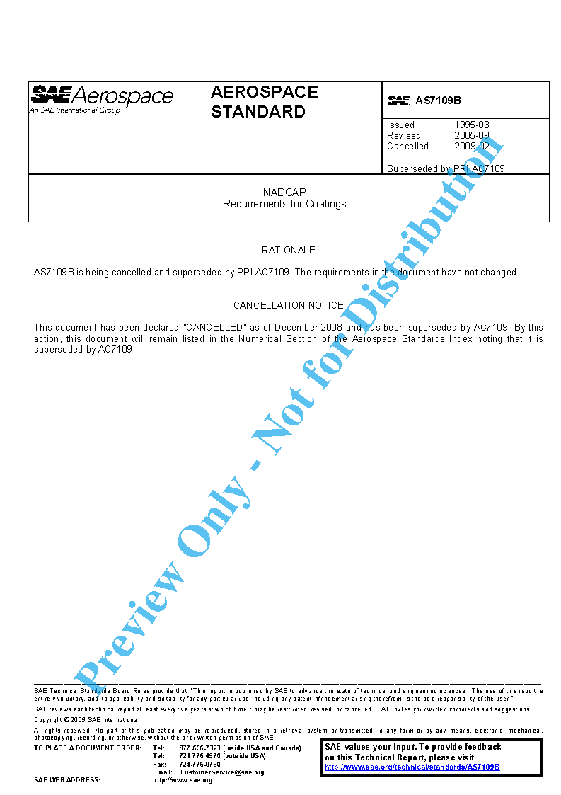 This document has been declared "CANCELLED" as of February 2009 and has been superseded by PRI AC7109. By this action, this document will remain listed in the Numerical Section of the Aerospace Standards Index noting that it is superseded by PRI AC7109. Cancelled specifications are available from SAE.