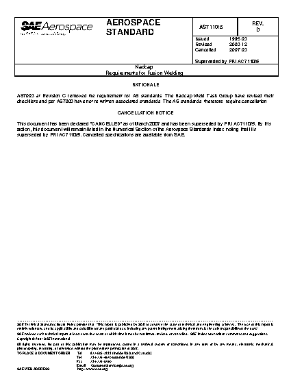 This document has been declared "CANCELLED" as of March 2007 and has been superseded by PRI AC7110/5. By this action, this document will remain listed in the Numerical Section of the Aerospace Standards Index noting that it is superseded by PRI AC7110/5. Cancelled specifications are available from SAE..