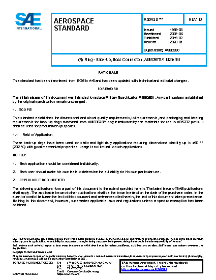 RING - BACK-UP, BOSS CONNECTION, AMS3652, AMS3656, AMS3660, AMS3667 (Stabilized: Feb 2015)