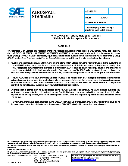 Aerospace Series - Quality Management Systems Statistical Product Acceptance Requirements