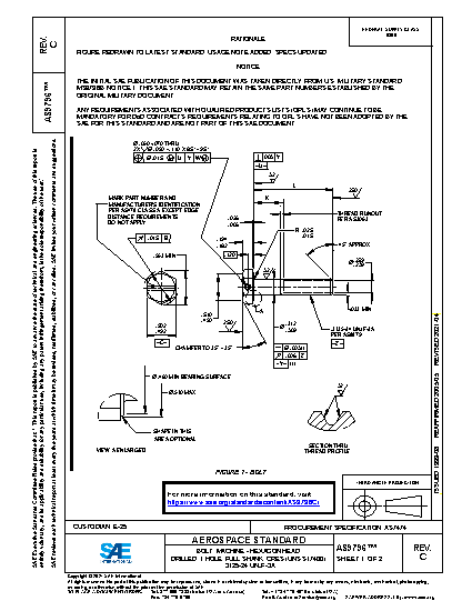 CORRECT DATUM REFERENCES IN FEATURE CONTROL FRAMES FOR RUNOUT, REDRAW FIGURE 1 TO SHOW A FULL SHANK DIAMETER PART, AND RESTORE ORIGINAL REQUIREMENTS FOR THREAD END CHAMFER.