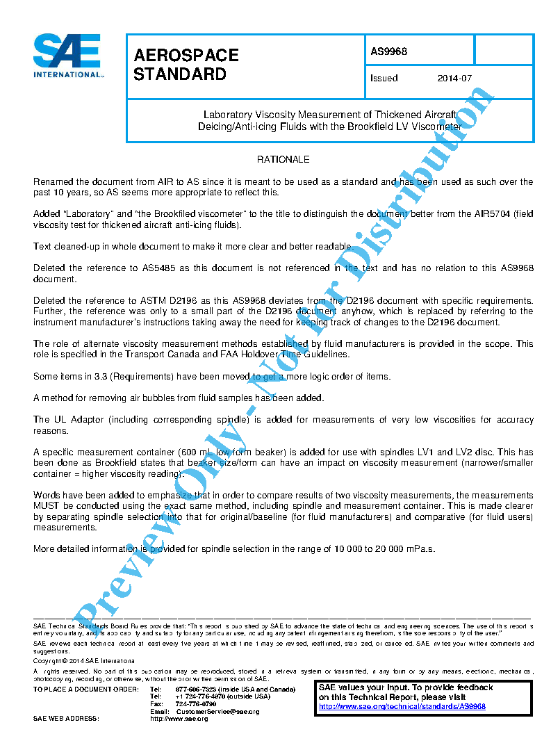 This AS describes a standard method for viscosity measurements of thickened (AMS1428) anti-icing fluids.