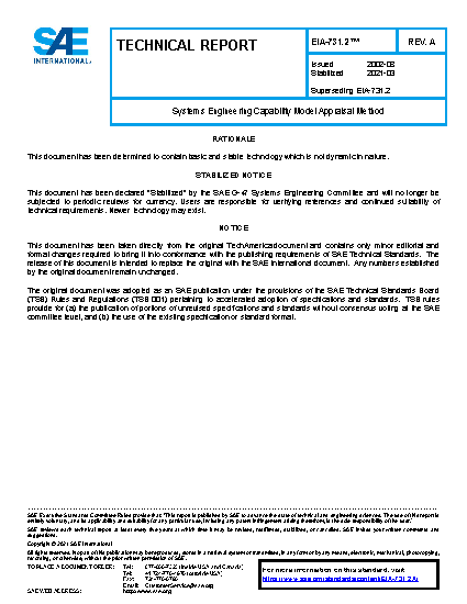 This document describes the Appraisal Method (AM) for the Systems Engineering Capability Model (SECM). An appraisal compares an organization's Systems Engineering capabilities against the Specific Practices of the Focus Areas and the Generic Characteristics defined in EIA-731, Part 1