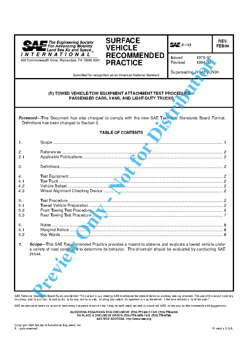 This SAE Recommended Practice provides a means to observe and evaluate a towed vehicle under a variety of road conditions to determine its behavior. The drivetrain should be evaluated by conducting SAE J1144.
