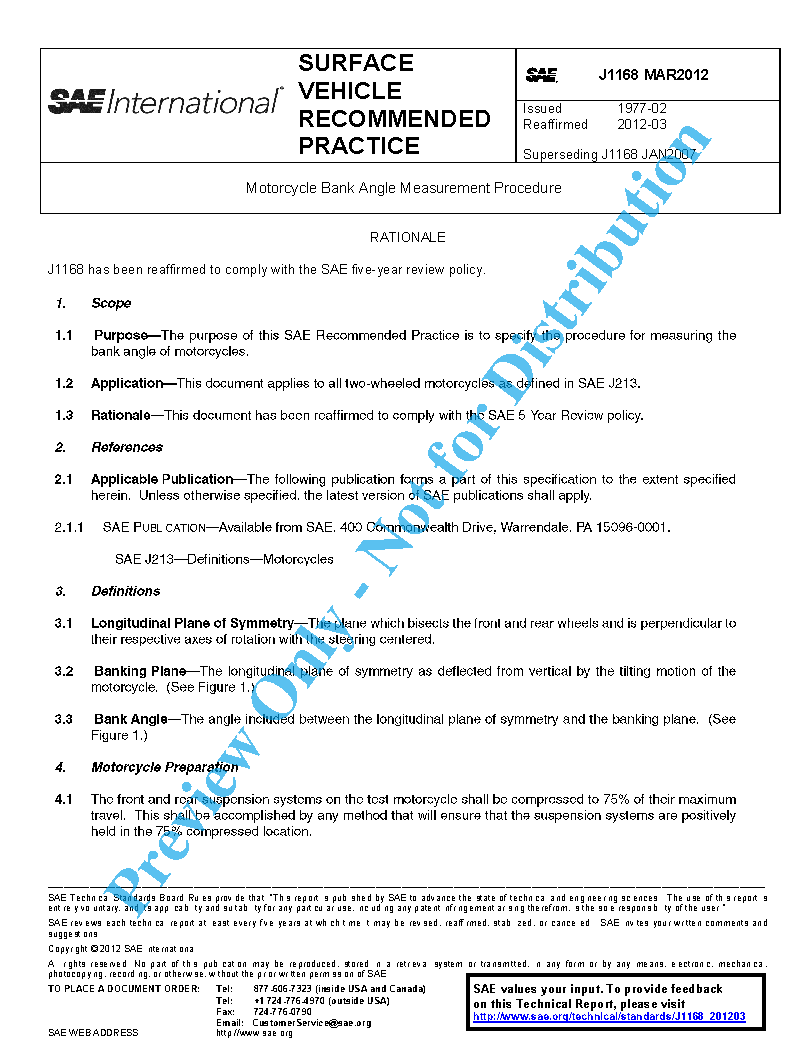 The purpose of this SAE Standard is to specify the procedure for measuring the bank angle of motorcycles.