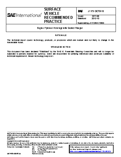 This SAE Recommended Practice defines flywheel housing flange configurations for applications requiring "O" ring sealing of the flange pilot bore.
