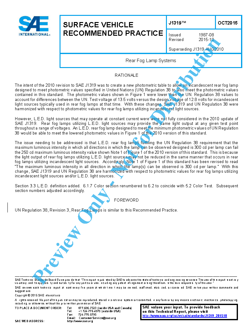 This SAE Recommended Practice provides test procedures, requirements, and guidelines for rear fog lamp systems.