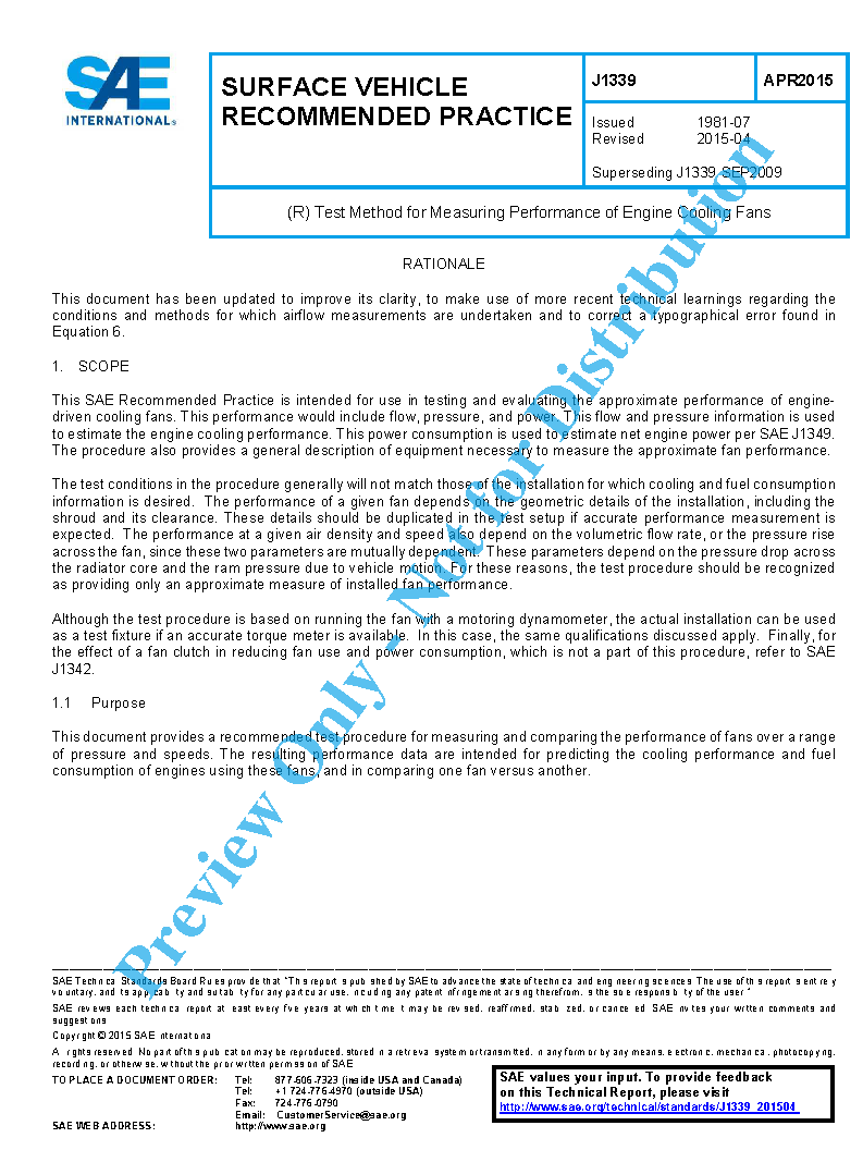 This SAE Recommended Practice is intended for use in testing and evaluating the approximate performance of engine-driven cooling fans. This performance would include flow, pressure, and power. This flow and pressure information is used to estimate the engine cooling performance. This power consumption is used to estimate net engine power per SAE J1349. The procedure also provides a general description of equipment necessary to measure the approximate fan performance.