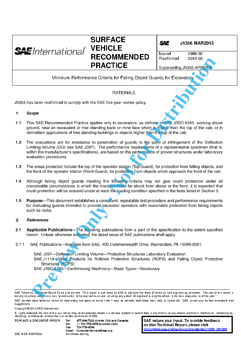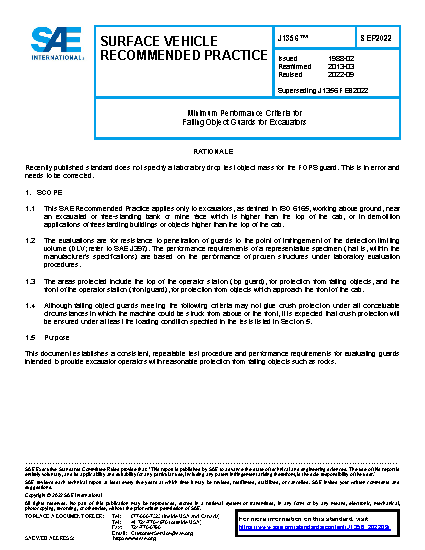 This SAE Recommended Practice applies only to excavators, as defined in ISO 6165, working above ground, near an excavated or free-standing bank or mine face which is higher than the top of the cab, or in demolition applications of freestanding buildings or objects higher than the top of the cab.