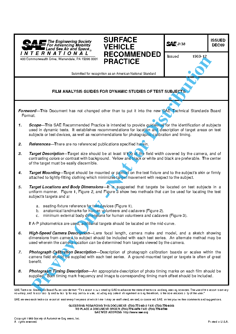 This SAE Recommended Practice is intended to provide guidelines for the identification of subjects used in dynamic tests. It establishes recommendations for location and description of target areas on test subjects or test devices, as well as recommendations for photographic calibration and timing.