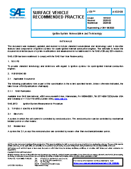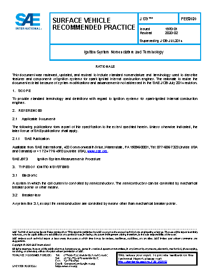 To provide standard terminology and definitions with regard to ignition systems for spark-ignited internal combustion engines.