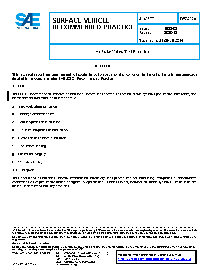This SAE Recommended Practice establishes uniform test procedures for air brake systems pneumatic, electronic, and electrical/pneumatic valves with respect to: