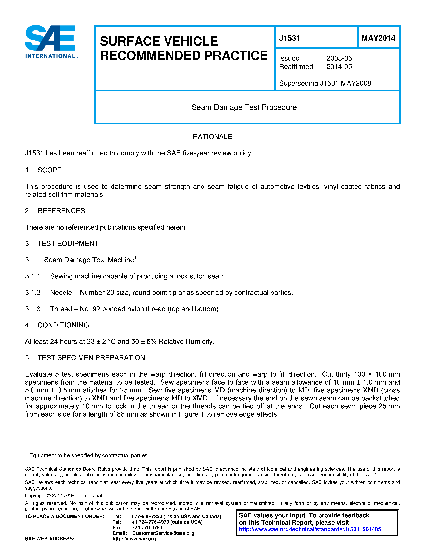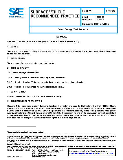 This procedure is used to determine seam strength and seam fatigue of automotive textiles, vinyl coated fabrics and related soft trim materials.