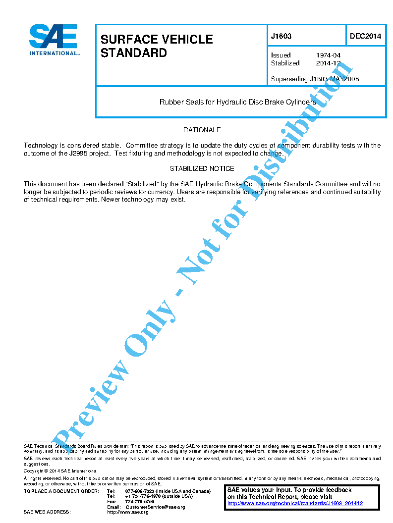 Rubber Seals for Hydraulic Disc Brake Cylinders (Stabilized: Dec 2014)