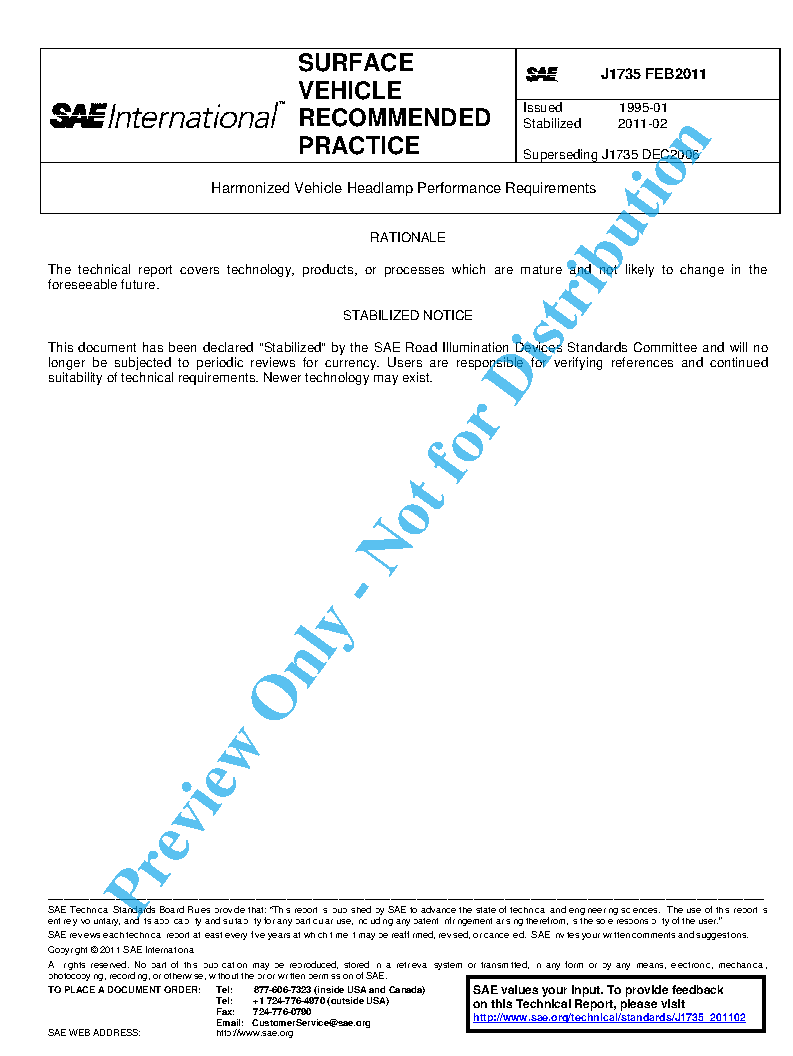 Harmonized Vehicle Headlamp Performance Requirements (Stabilized: Feb 2011)