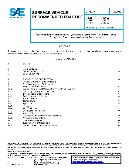 This SAE Recommended Practice is intended for the determination of the losses of hydrocarbon fluids, by permeation through component walls, as well as through “microleaks” at interfaces of assembled components while controlling temperature and pressure independently of each other. This is achieved in a recirculating system in which elements of a test fuel that permeate through the walls of a test specimen and migrate through the interfaces are transported by a controlled flow of dry nitrogen to a point where they are measured. That measurement point is a device, such as a canister containing activated charcoal or other means of collection or accumulation, where the hydrocarbon losses are then measured by weight change or analyzed by some other suitable means.