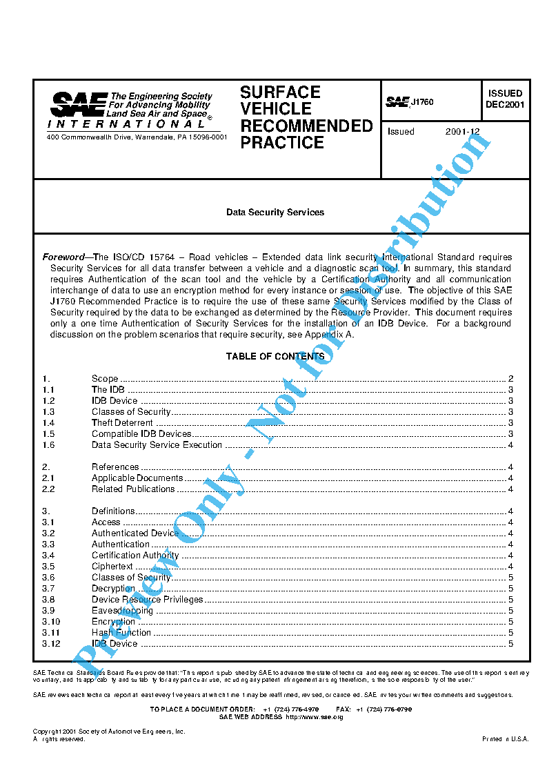 The scope of this SAE Recommended Practice is to require the use of the same Security Services as defined by the International Standard ISO/CD 15764, modified by the Class of Security as determined by the resource provider and referenced in Table 1, Extended Data Link Security References.