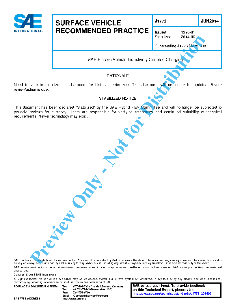 SAE Electric Vehicle Inductively Coupled Charging (Stabilized: Jun 2014)