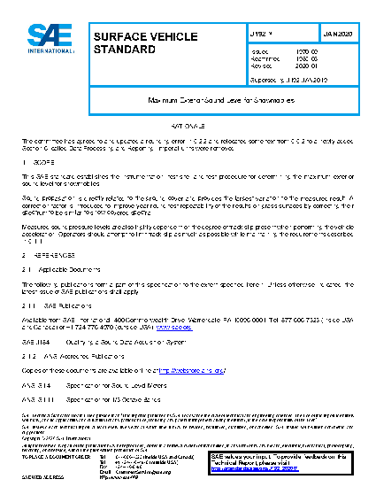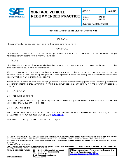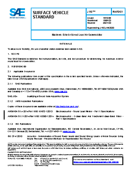 This SAE Recommended Practice establishes the instrumentation, test site, and test procedure for determining the maximum exterior sound level for snowmobiles.