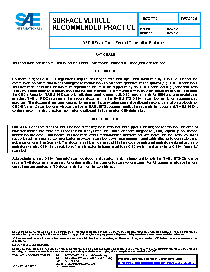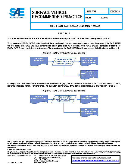 - The presentation of the SAE J1978 document family, where SAE J1978-2 covers second generation protocol functionality defined in SAE J1979-2 and SAE J1979-3, and SAE J1978-1 covers first generation protocol functionality defined in SAE J1979 and protocol determination for SAE J1979, SAE J1979-2, and SAE J1979-3.