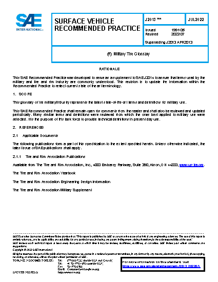 This SAE recommended practice shall remain open for comments from the reader and shall also be reviewed and updated periodically. Many similar terms and definitions were reviewed from which the ones best applied to military use were selected. It is the purpose of this task force to provide technical definitions in present day use.