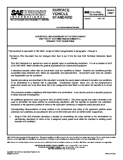 This SAE Standard describes a method for determining the noise emitted to the environment by earthmoving machinery in terms of the A-weighted sound power level while the machine is working under dynamic test conditions.