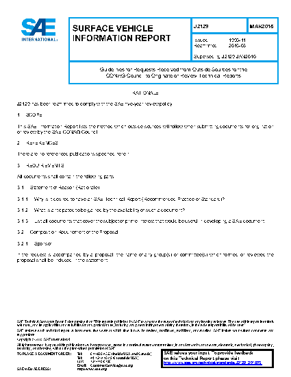 This SAE Information Report lists the method which outside sources will follow when submitting documents for origination or review by the SAE CONAG Council.