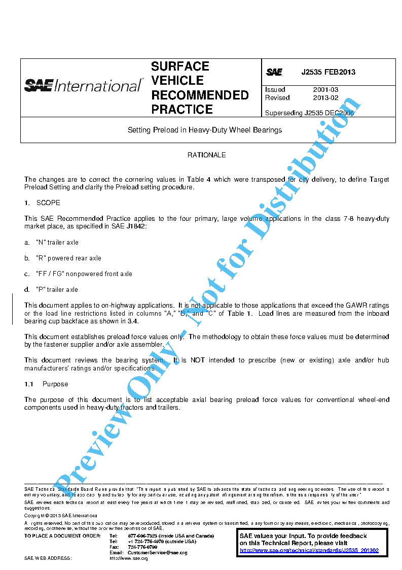 This document establishes preload force values only. The methodology to obtain these force values must be determined by the fastener supplier and/or axle assembler.