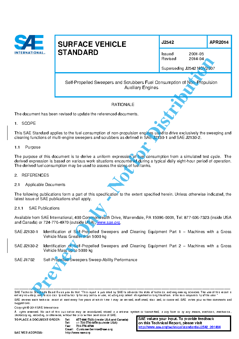 This SAE Standard applies to the fuel consumption of non-propulsion engines used to drive exclusively the sweeping and cleaning functions of multi-engine sweepers and scrubbers as defined in SAE J2130-1 and SAE J2130-2.